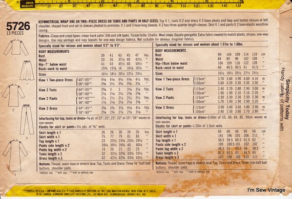 Simplicity 5726 Vintage Sewing Pattern Half Size Dress Wrap Etsy